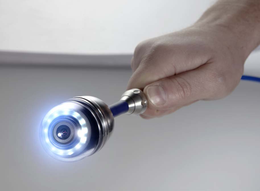Wohler VIS 350 features a 100 ft. push rod topped with a camera head that pans 360° and tilts 180° to get deep into tight spaces and ensure that all areas of the target are visible. The superior German optic system shows crystal clear images.