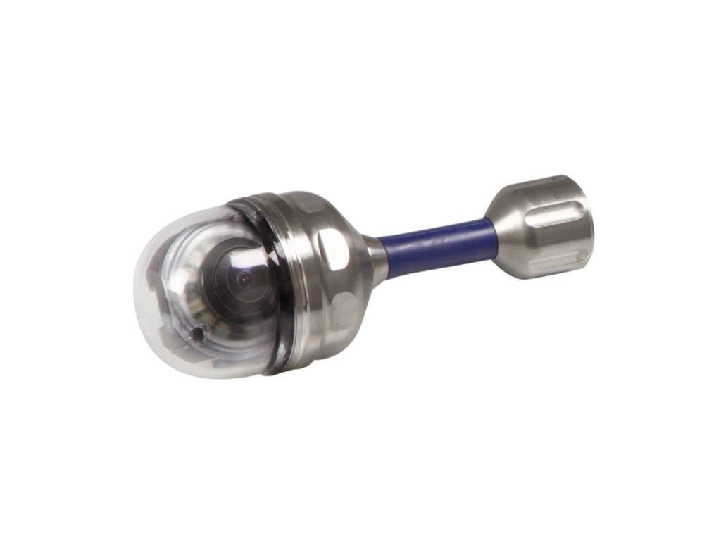- Brightly illuminating color camera head, 2″ in length and 1 1/2″ in diameter, easily negotiates tight bends